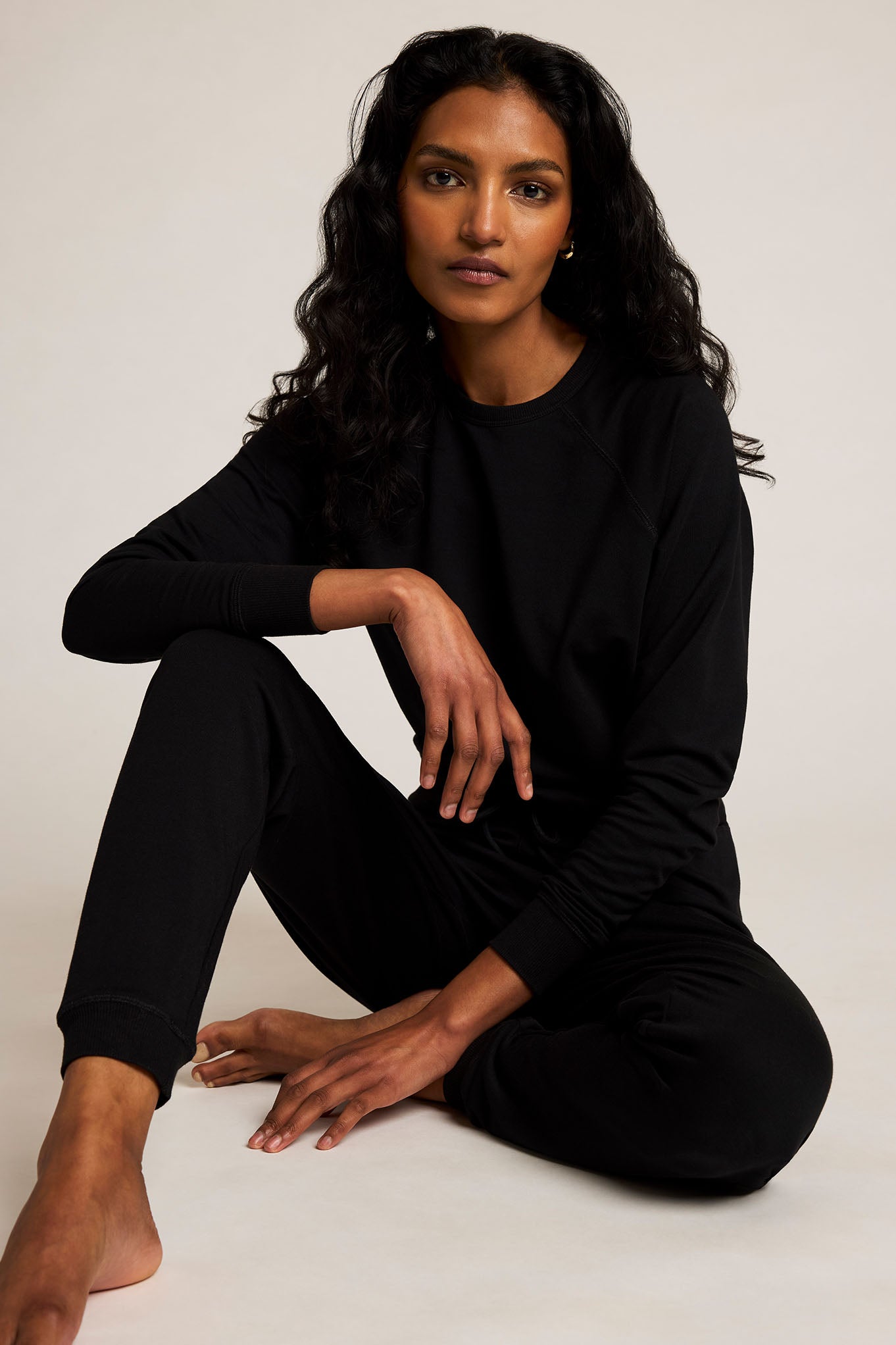 Lightweight. smooth + super soft sweatpant that works as well for bed as a trip to the bodega.